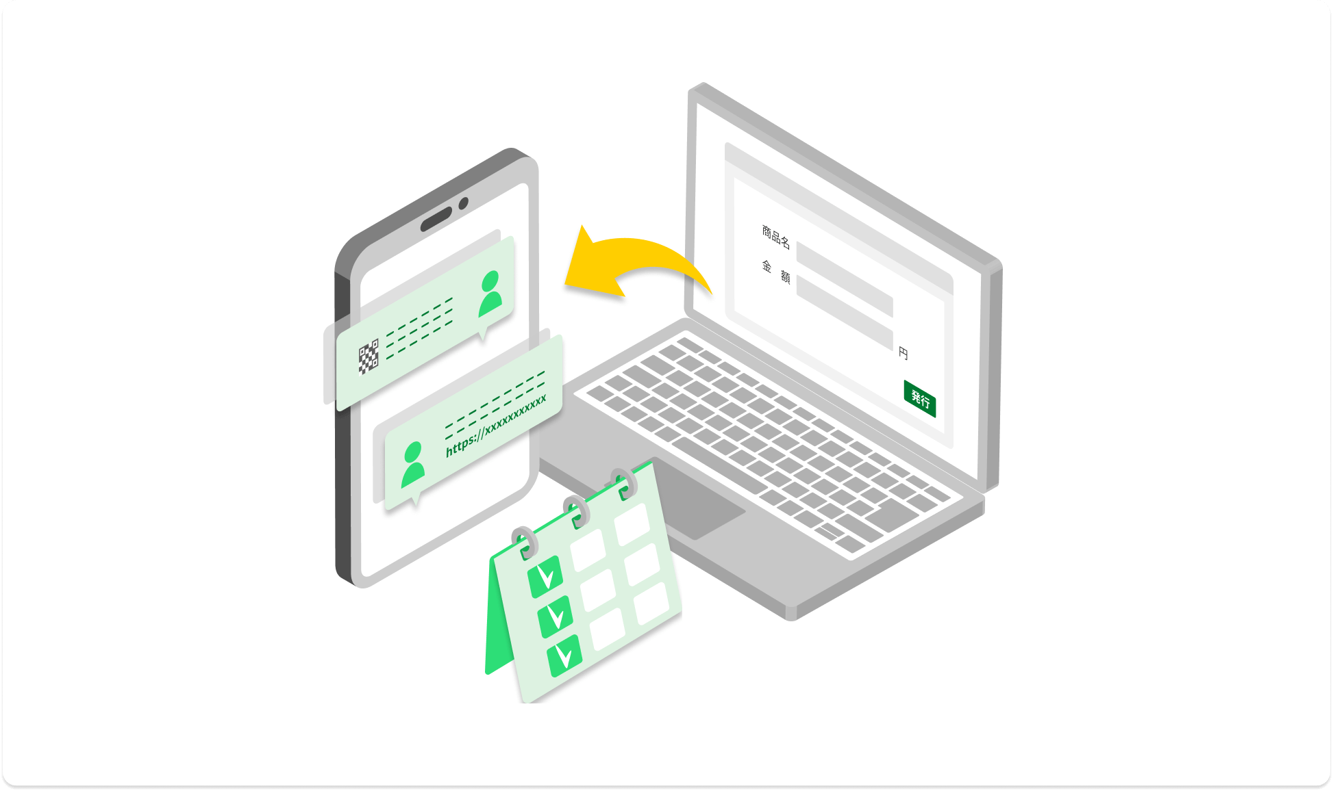 決済リンクをお客様に、メールやチャットなどでお届けいただくことで、単発商品の決済が可能です。