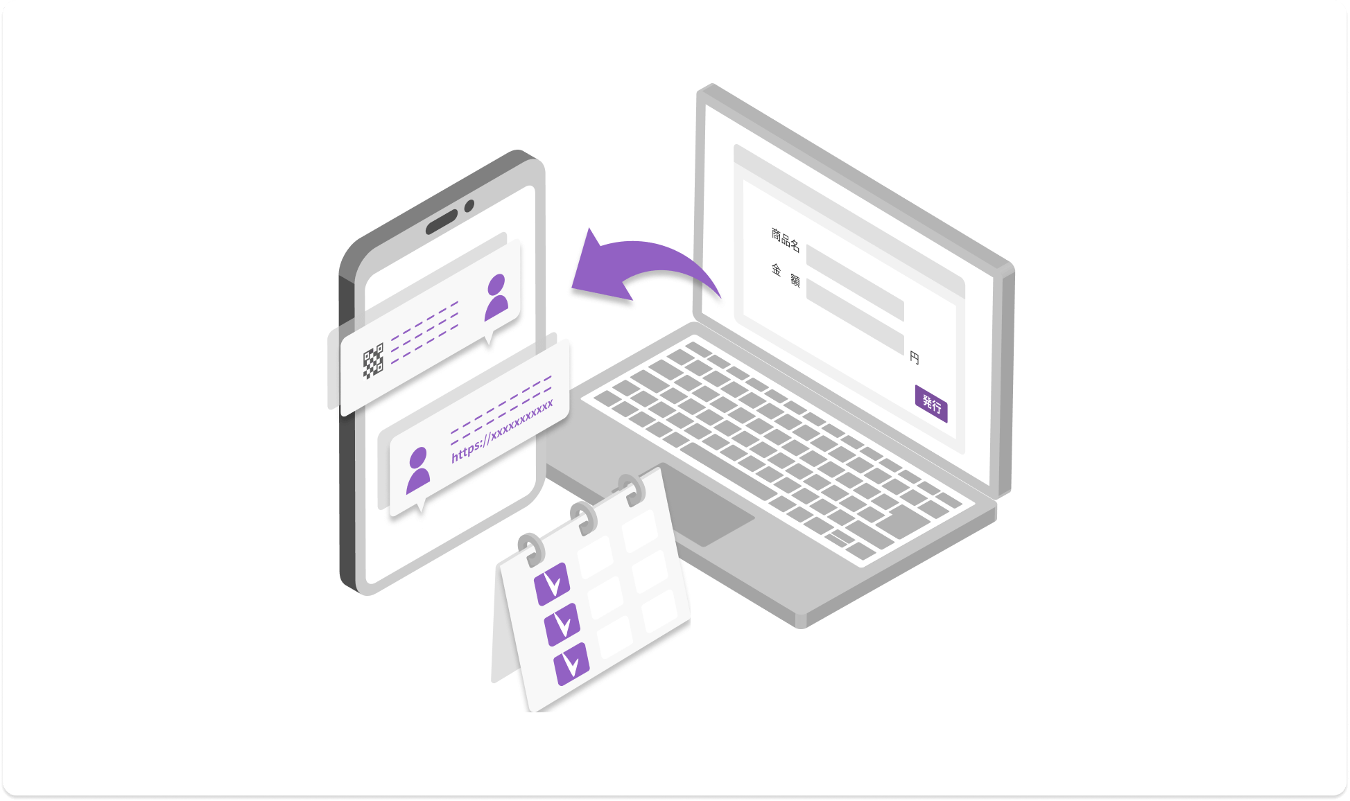決済リンクをお客様に、メールやチャットなどでお届けいただくことで、単発商品の決済が可能です。